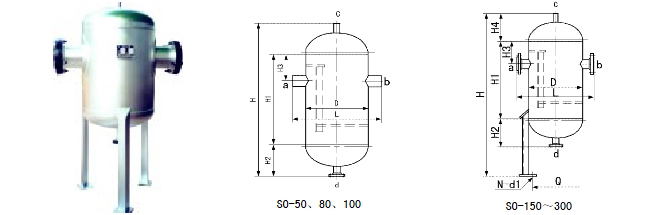 SQ蒸汽分水器 產(chǎn)品特性 SQ型蒸汽分水器是用在工藝管道上用來(lái)分離蒸汽中水滴的特種管道附件。凡需要除掉蒸汽中水滴的地方,在其人口前的管道上,應設置蒸汽分水器。如:進(jìn)裝置的蒸汽主管上、石油化工裝置內的飽和蒸汽在并入相應管網(wǎng)前,蒸汽進(jìn)入汽輪機之前,應設置蒸汽分水器。 我公司生產(chǎn)的蒸汽分水器參照《石油化工裝置工藝管道安裝設計手冊》第二篇管道器材上的要求定型制造,設計壓力為1.3MPa,設計溫度為300℃,其分離面積已按蒸汽接管尺寸予以考慮,使用時(shí)可直接根據蒸汽管徑選用。 產(chǎn)品規格